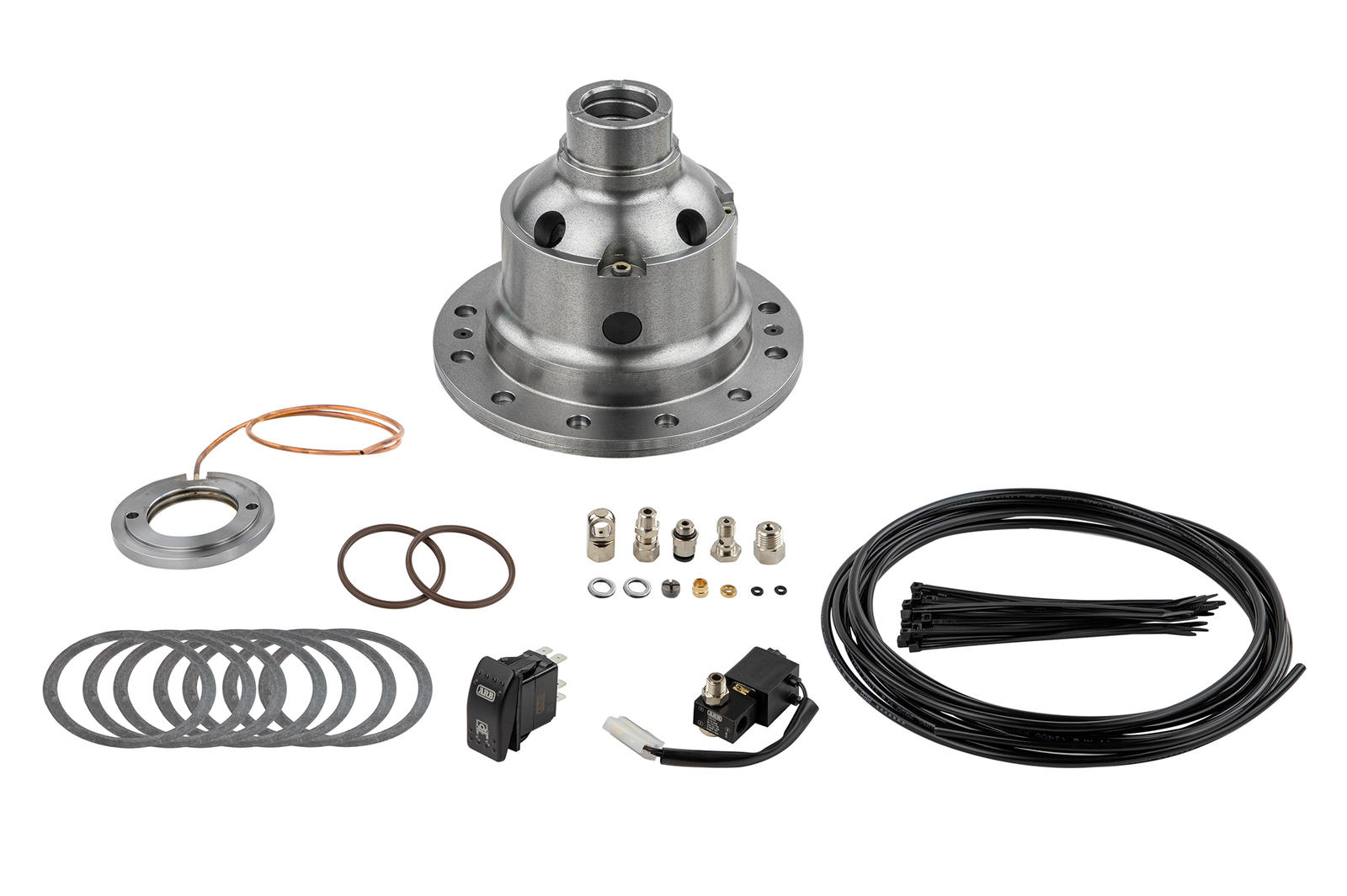 Il compressore rilascia la pressione necessaria per bloccare il differenziale e solitamente viene installato in una posizione adeguata all’interno del vano motore. L’accensione del compressore è automatica e serve per mantenere sempre costante la pressione necessaria per inserire il blocco differenziale. Gli interruttori, fissabili sul cruscotto, permettono di mettere in funzione e disattivare il bloccaggio. L’inserimento può avvenire anche con il veicolo in marcia grazie al tipo di pistone anulare applicato al differenziale ma si consiglia comunque una velocità ridotta. Quando il dispositivo viene disattivato, l’aria compressa fuoriesce dall’elettrovalvola e delle piccole molle aprono l’anello di sicurezza, liberando così il differenziale.