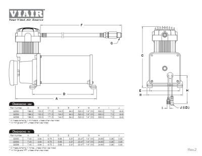 SPECIFICHE – 12 Volt/24 Volt – Motore magnetico permanente – Ciclo di lavoro: 33% @ 100 PSI – Pressione max di lavoro: 150 PSI - Max amp 12V: 21 AMP - Max amp 24V: 13 AMP - Grado di protezione: IP67 – Dimensioni: 20.32 x 10.16 x 17.14 - Peso netto: 3.5 Kg