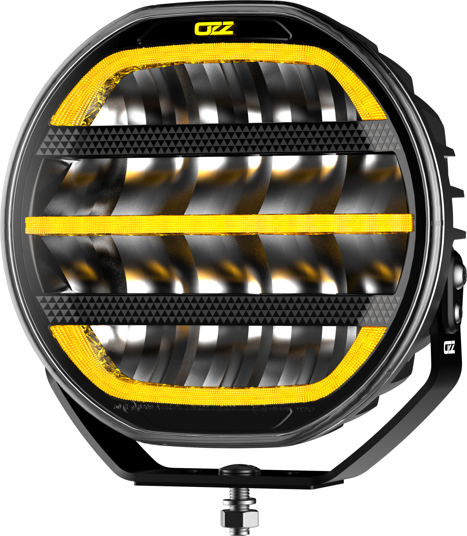 Questi fari da 178 mm sono equipaggiati con una luce dinamica di posizione di avvio bianca e arancione. Come successore innovativo della serie di luci OZZ originale, l'XR2 P7″ offre un nuovo modello di avvio prominente per un effetto visivo impressionante all'accensione. Con una funzione di potenziamento, l'OZZ XR2 P7″ emette ben 5800 lumen, garantendo 1 lux a una distanza di 470 metri.