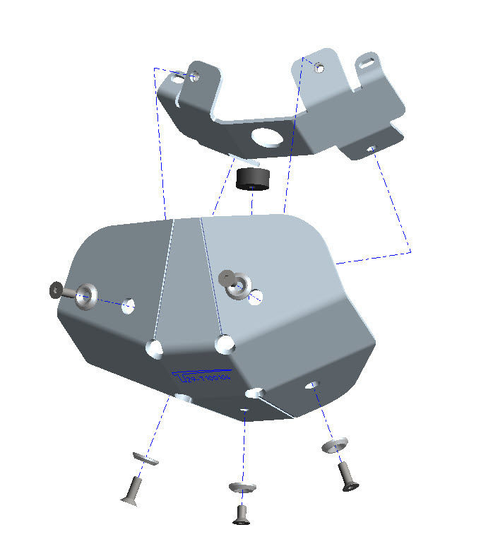 La piastra di protezione è compresa di kit montaggio e bulloneria. L'installazione non prevede modifiche al veicolo in quanto vengono sfruttati i fori già presenti nel telaio.