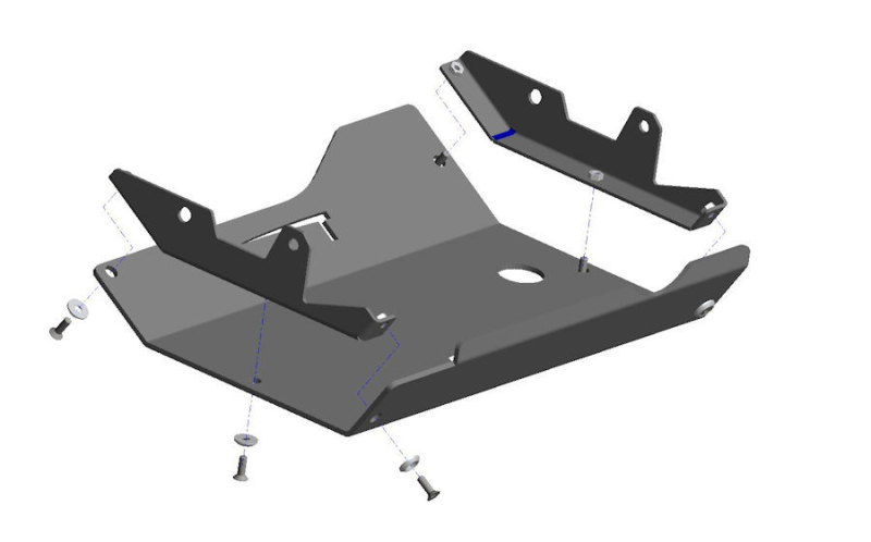 La piastra di protezione è compresa di kit montaggio e bulloneria. L'installazione non prevede modifiche al veicolo in quanto vengono sfruttati i fori già presenti nel telaio.