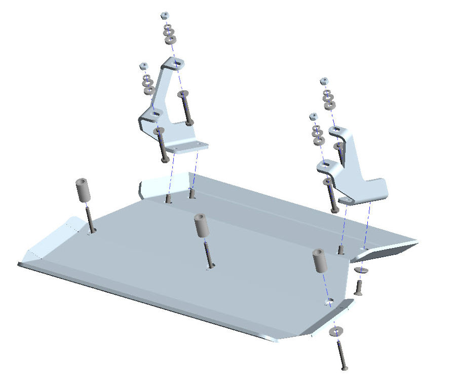 La piastra di protezione è compresa di kit montaggio e bulloneria. L'installazione non prevede modifiche al veicolo in quanto vengono sfruttati i fori già presenti nel telaio.