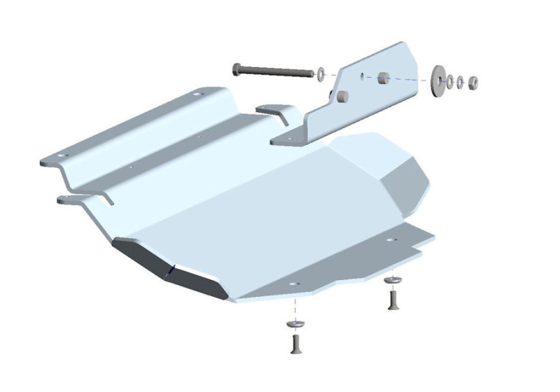 La piastra di protezione è compresa di kit montaggio e bulloneria. L'installazione non prevede modifiche al veicolo in quanto vengono sfruttati i fori già presenti nel telaio.