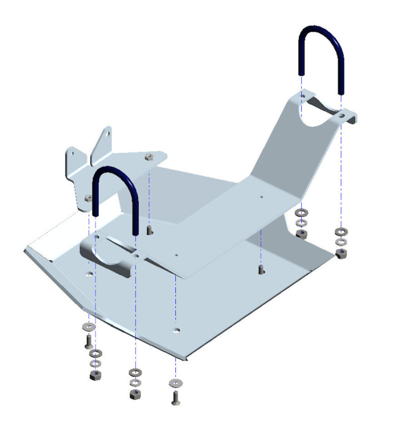 Protezione sottoscocca posteriore. La piastra di protezione è compresa di kit montaggio e bulloneria. L'installazione non prevede modifiche al veicolo in quanto vengono sfruttati i fori già presenti nel telaio.