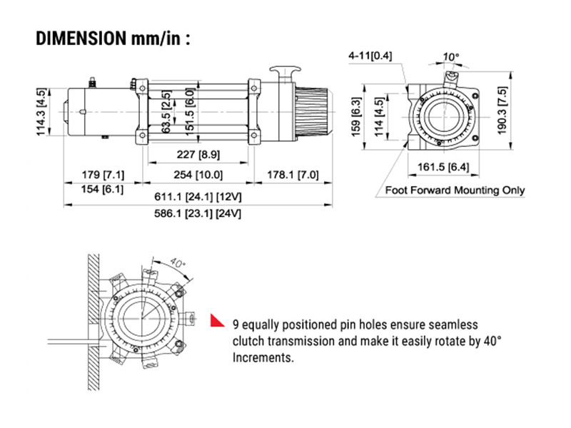 | Strato di cavo | Capacità di tiro, kg / lb | Cavo totale per strato, m / ft |
