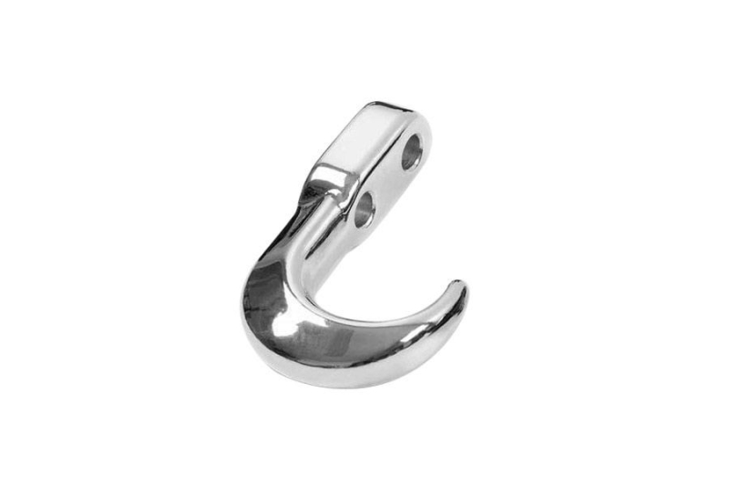 Questo gancio di traino universale Warn Industries ha una capacità di 8.000 libbre ed è disponibile in finitura cromata. Viene venduto singolarmente.