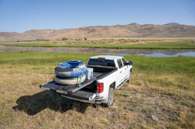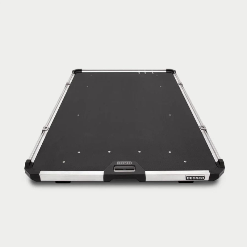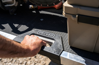 Il pianale CARGOGLIDE Decked facilita l'accesso alle attrezzature riposte nel cassone del pick-up o van. Costruito in acciaio verniciato a polvere e con un compensato marino di tipo industriale da 1,9 cm (rivestito con un foglio superiore termoplastico), il pianale è resistente a tutti gli usi del cantiere e agli agenti atmosferici e ai raggi UV. E' possibile scegliere l'estensione (75% o 100%) e la capacità di carico (da 272 kg fino a 1000 kg), può contenere varie attrezzature di lavoro come compressori, saldatrici, cassette degli attrezzi, etc. Le guide laterali presentano una scanalatura a T dove è possibile, grazie all'utilizzo degli anelli, di ancorare il carico.