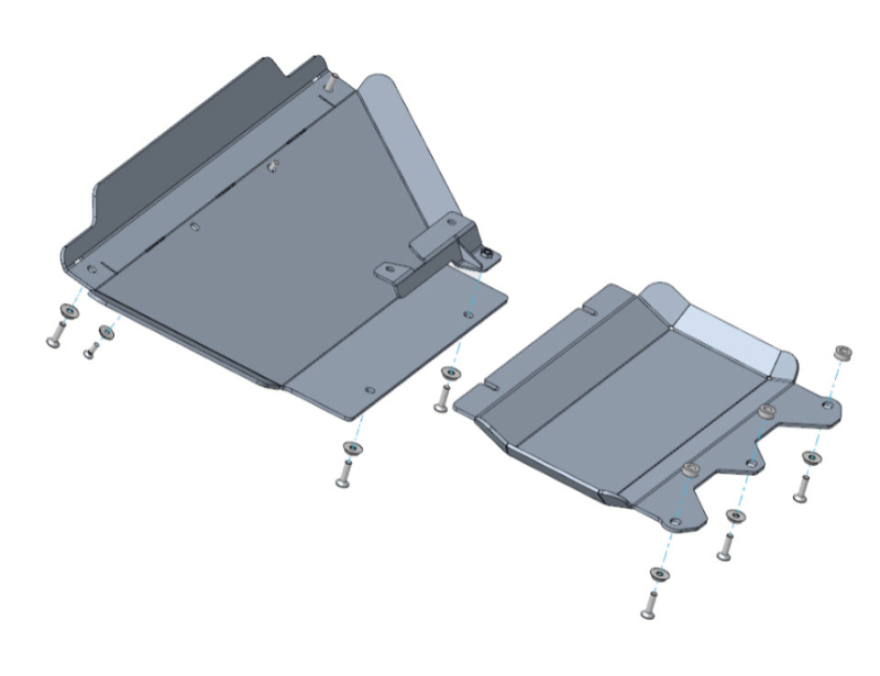 La piastra di protezione è compresa di kit montaggio e bulloneria. L'installazione non prevede modifiche al veicolo in quanto vengono sfruttati i fori già presenti nel telaio.
