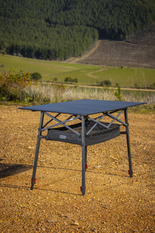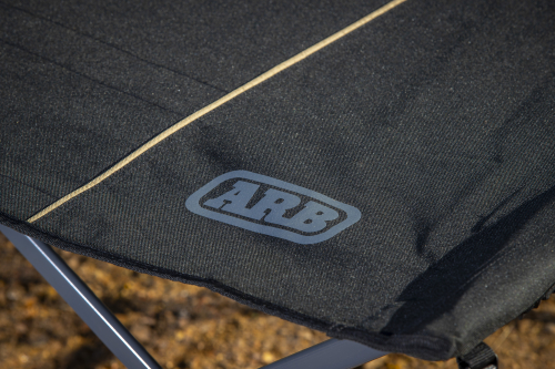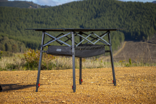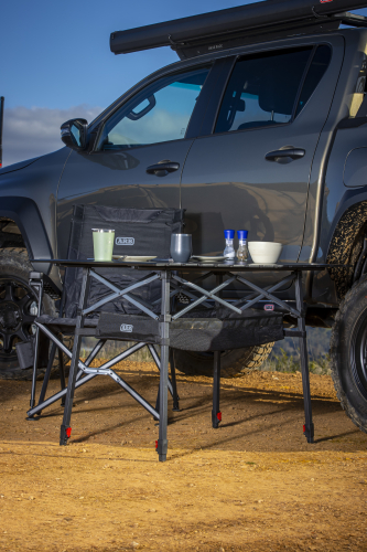 Il tavolo da campeggio ARB Pinnacle è perfetto per cucinare e mangiare quando si è in viaggio. La sua struttura resistente è realizzata in alluminio nero con barre trasversali in contrasto color carbone.