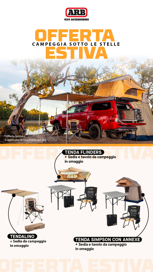 riceveranno una (1x) sedia ARB COMPACT DIRECTORS con schienale alto + un (1x) tavolo da campeggio (PN: 2-10500131+ PN: 2-10500130).