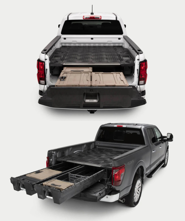 Il cuore della proposta DECKED è il Drawer System, una piattaforma modulare con un singolo o due grandi cassetti a scorrimento che consente di sfruttare al meglio il cassone del pick-up, mantenendo un piano di carico superiore utilizzabile.