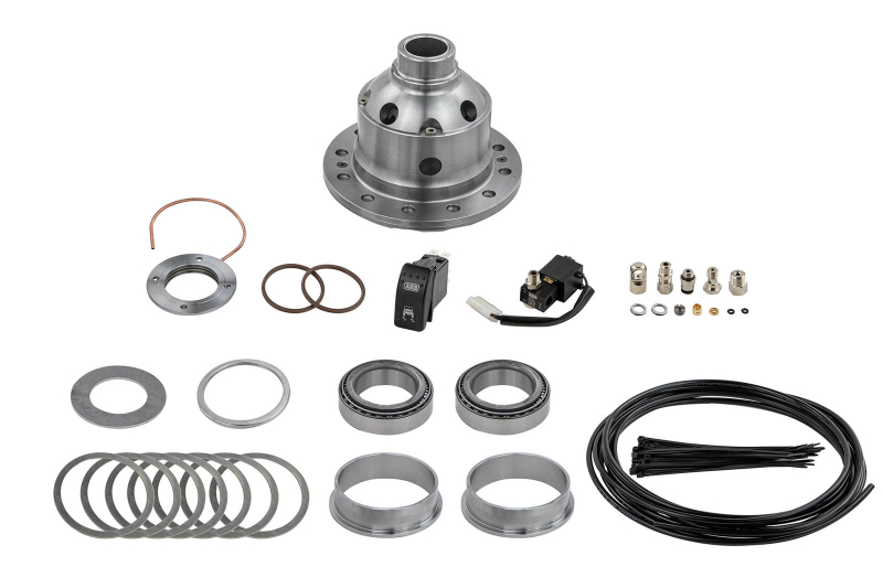 Il compressore rilascia la pressione necessaria per bloccare il differenziale e solitamente viene installato in una posizione adeguata all’interno del vano motore. L’accensione del compressore è automatica e serve per mantenere sempre costante la pressione necessaria per inserire il blocco differenziale. Gli interruttori, fissabili sul cruscotto, permettono di mettere in funzione e disattivare il bloccaggio. L’inserimento può avvenire anche con il veicolo in marcia grazie al tipo di pistone anulare applicato al differenziale ma si consiglia comunque una velocità ridotta. Quando il dispositivo viene disattivato, l’aria compressa fuoriesce dall’elettrovalvola e delle piccole molle aprono l’anello di sicurezza, liberando così il differenziale.