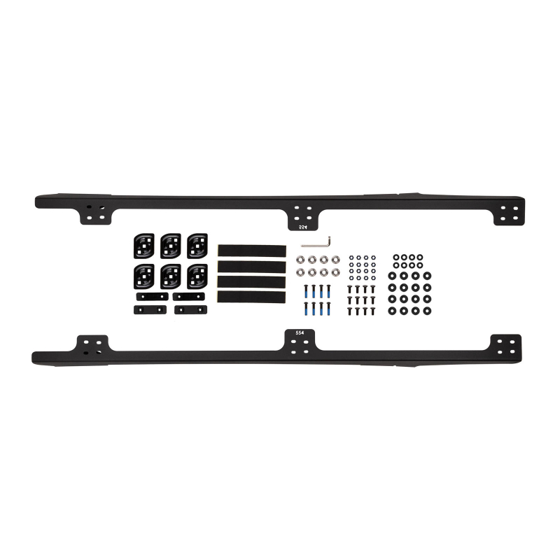 Combinando la sua struttura completamente saldata in alluminio estruso con il suo design esclusivo a barre trasversali, questo portapacchi vanta una forza che elimina la necessità di ulteriori supporti sotto la struttura. Tutto questo dà vita a un portapacchi super basso e che offre maggiore spazio per tutti gli accessori necessari per i viaggi off-road.