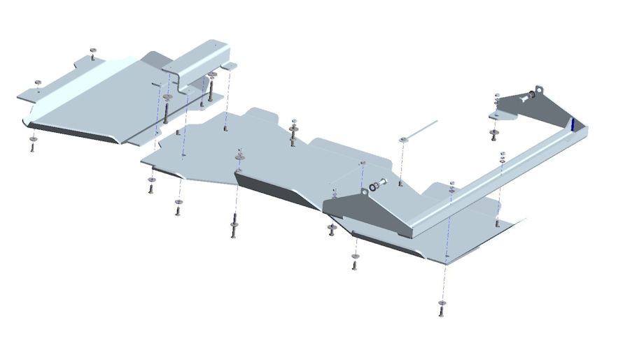 La piastra di protezione è compresa di kit montaggio e bulloneria. L'installazione non prevede modifiche al veicolo in quanto vengono sfruttati i fori già presenti nel telaio.