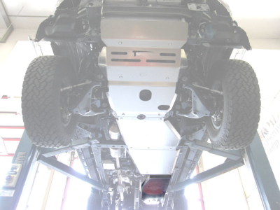 La piastra di protezione è compresa di kit montaggio e bulloneria. L'installazione non prevede modifiche al veicolo in quanto vengono sfruttati i fori già presenti nel telaio.