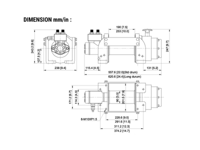 | Strato di cavo | Capacità di tiro, kg / lb | Cavo totale per strato, m / ft | Velocità | |
