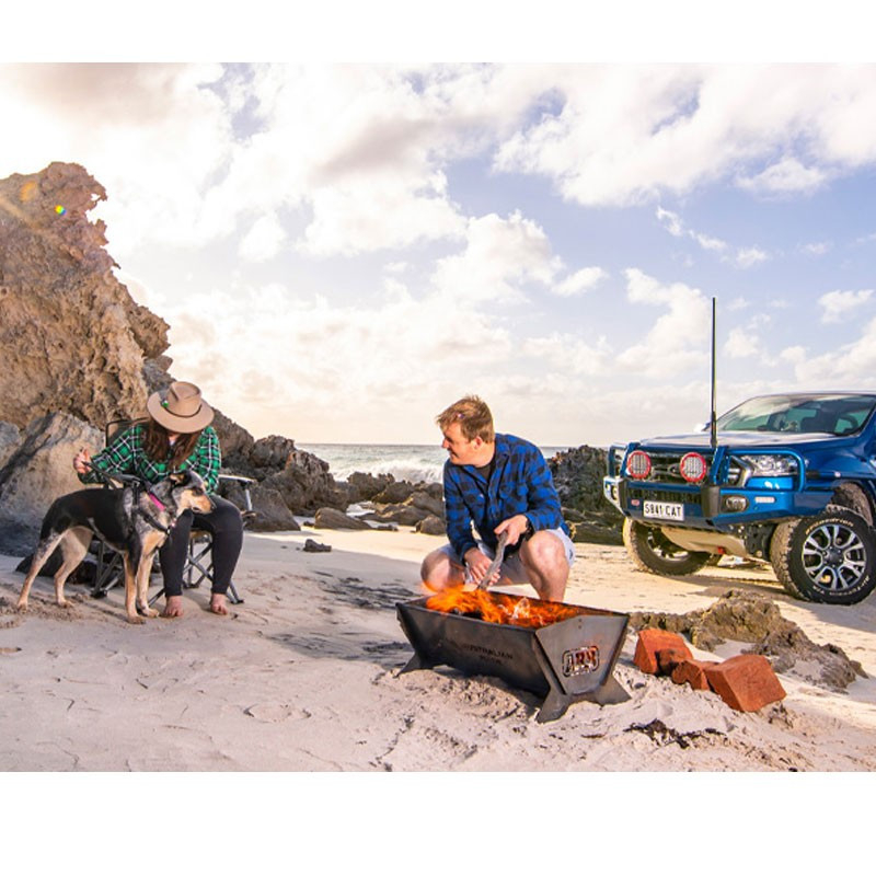 Il barbecue ARB è composto da 5 pezzi di acciaio REDCOR da 3 mm che si incastrano tra loro senza bisogno di attrezzi per il montaggio.