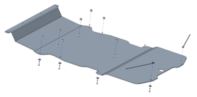 La piastra di protezione è compresa di kit montaggio e bulloneria. L'installazione non prevede modifiche al veicolo in quanto vengono sfruttati i fori già presenti nel telaio.